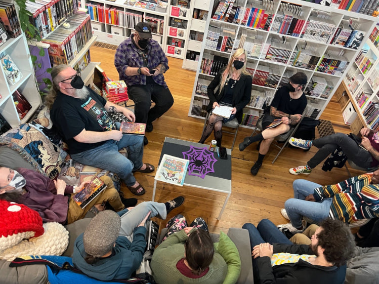 Every month we meet up and discuss a graphic novel, lead by our lovely community member Elizabeth! Check out what we're reading this month below.